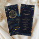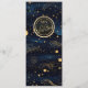 Fügen Sie Ihrem Empfang eine Touch Zauber hinzu, mit diesem himmlischen Hochzeitsmenü, das den Namen jedes Gastes in elegantem Schriftzeichen wiedergibt. Der tiefe Marinehintergrund ist mit goldenen Sternen, Monden und Sternbildern geschmückt und schafft so eine traumhafte Nachthimmelästhetik. Ein anmutiger Bogen umrahmt die personalisierten Namen und Menüdetails in raffinierten Serif- und Kalligraphie-Schriftart. Ideal für Hochzeiten im Abend, Stargazer-Feste oder Astrologie-inspiriert Veranstaltungen, ist dieses Menü eine einmalige Platzkarte und ein Genuss. Vollständig editierbar für Gastnamen und Kursdetails.