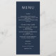 Celestial Wedding Dark Blue Golden Menu Card mit einer Mondform auf der Rückseite.