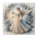 A luminous winter angel drifts through a quiet snowy landscape, carrying a softly glowing lantern that casts a warm golden halo against cool blue tones. Her flowing gown and feathered wings create an ethereal sense of grace, framed by evergreen branches, pale poinsettias, and delicate botanical details that enhance the peaceful Christmas atmosphere. The gentle contrast of warm light against frosted surroundings evokes hope, serenity, and sacred stillness, making this design ideal for holiday décor, spiritual themes, and winter storytelling. Elegant linework, soft watercolor shading, and a dreamlike palette blend together to create a timeless seasonal scene full of wonder and tender emotion. AI generated artwork.