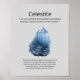 Celestite erleichtert die Kommunikation und Verbindung zu höheren Realms. Es bringt Frieden, Harmonie und Ruhe in die Umwelt. Dieser Kristall trägt zur spirituellen Entwicklung bei und fördert die Intuition und innere Weisheit.