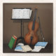 Diese Abbildung zeigt eine Miniaturszene, in der sich ein Cello neben einem Musikstand inmitten leicht unordentlicher Bücher und lockerer Noten an die Wand lehnt. Die Bücher haben bekannte Titel wie Haydn String Quartette und Bach Cello Anzug Nr. 1 mit Ober- und Katalognummern, die sie sich als echt anfühlen lassen. Die Partituren (die Werke enthalten, die glauben, Musik) verwenden alle Bass-Clef. Dieses Kunstwerk ist Teil meiner 2023 aufgelegten Instrumentenabbildungen, die nur in Mozartini-Shops erhältlich sind.