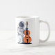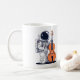 Eine einzigartige Tasse mit einem Karikaturenastronaut in einem weißen Raumanzug und einem lebhaften, orange-braunen Cello auf einem soliden schwarzen Hintergrund. Ideal für Musik- und Raumbegeisterte!"