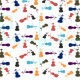 Mehrfarbiges musikalisches Cello-, Violoncello-, Instrument- und Bogenmuster entwerfen im Blau, im Aqua, im Rot, in der Orange, im Braun, in der Holzkohle und in Lila.