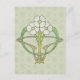 Celtic Art Deko Blumendesign drei weiße Blume verblassten auf einem grünen gemusterten Hintergrund. sgb01
