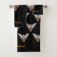 Das Vogel-Icon im Stammesstil ist von keltischen Knotendesigns inspiriert. Benutzerdefinierte Hintergrundfarbe. Individueller Text auf jedem Handtuch.