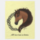 Ein braunes Pferdeprofil mit einem keltischen Stammesknoten funktioniert in einem Kreis mit gelbem Hintergrund