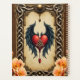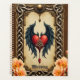 Celtic elegance with a heart and wings. An elegant, decorative frame characterized by Celtic knotwork. A vibrant red heart stands out as a central element at the bottom of the design. Within the heart is a Celtic knot symbol, symbolizing connection and protection. The heart is flanked by dark, feathered wings, giving it a majestic and protective appearance. Delicate peach blossoms with yellow centers are arranged on either side of the heart.