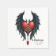 Celtic elegance with a heart and wings. An elegant, decorative frame characterized by Celtic knotwork. A vibrant red heart stands out as a central element at the bottom of the design. Within the heart is a Celtic knot symbol, symbolizing connection and protection. The heart is flanked by dark, feathered wings, giving it a majestic and protective appearance. Delicate peach blossoms with yellow centers are arranged on either side of the heart.