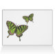 Dieses Design umfasst einen Frack-Schmetterling mit rosa und grünen Markierungen und ein keltisches Gewebe auf den Flügeln und dem Körper. Ein Flügel zeigt das Gewebe auf dem Schwarzen und der andere auf den rosa und grünen Markierungen. Die Karte verfügt über ein leeres Interieur für benutzerdefinierte Nachrichten. Es ist auch in einer kleineren Kartengröße erhältlich.