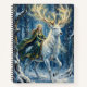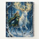 Journey into the mystic winter woods with this enchanting fantasy illustration. The artwork features a Celtic goddess or elf queen riding a majestic white stag with glowing golden antlers through a snowy forest. Rendered in a textured impasto oil painting style, this design captures the magic of Yule and ancient folklore. The white stag is a symbol of spiritual quest and wonder. A perfect gift for fantasy lovers, hunters, or fans of mythology. Customize this magical scene with a family name or holiday greeting using the design tool.