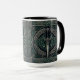 Ein keltisches Design in Grüntönen mit einem kurzen Schwert und keltischen Knoten.