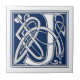 Ein schöner, dekorativer, keltischer Buchstabe, beleuchtet mit grauen Drachenköpfen auf einem samtig dunkelblauen Hintergrund.