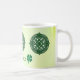 Drei faszinierende, grüne keltische Knotenkreise auf einem grünen Hintergrund bilden eine wunderschöne irische Tasse. Personalisieren Sie mit Ihrem Namen grenzt an Kleeblätter.