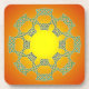 Ein grün-blaues keltisches Knoten-Set vor einem sonnendurchfluteten Kork-Untersetzer.