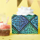 Mit diesem einzigartigen Stück Papier mit zwei verschiedenen blau-grünen keltischen Krondiamanten-Designs wackeln Sie Ihr Geschenk.