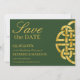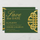 Dieses einfache und klassische keltische Knot Green und Gold Handfasting Save the Date Design ist die perfekte Erinnerung für Ihren besonderen Tag mit einem Imitat Foil Gold keltischen Knoten über einer benutzerdefinierten Hintergrundfarbe und Ihrem personalisierten Text.