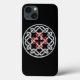 Ein iPhone Gehäuse mit keltischem Knotendesign mit einem roten Quadrat Kreuz in der Mitte.
