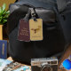 Skorpion-Symbol. Durch keltisches Knoten-Design inspiriertes Bild. Benutzerdefinierte Hintergrundfarbe. Benutzerdefinierter Text auf beiden Seiten.