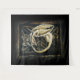 Ein kleiner, cremefarbener Drache, der auf Stein keltischer Knoten stehend ist. Der Stein, den der Drache darstellt, ist ein Stammestein.
