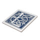 Ein schöner, dekorativer, keltischer Buchstabe, beleuchtet mit grauen Drachenköpfen auf einem samtig dunkelblauen Hintergrund.