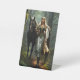 Eine sanfte keltische Jungfrau führt ihr Pferd durch einen mittelalterlichen Wald.