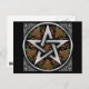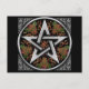 Künstlerisches keltisches Pentagrammdesign in poliertem Silbermetall. Feueratmende Drachen in Rot und Grün. Komplexes Eckscrollwork. Elegantes Geschenk für Wikaner, Heiden, Anhänger der Erdreligionen.