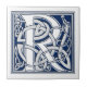 Ein schöner, dekorativer, keltischer Buchstabe, beleuchtet mit grauen Drachenköpfen auf einem samtig dunkelblauen Hintergrund.