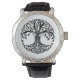 Uhr, Klassische Damenuhr mit schwarzen Lederarmband