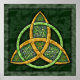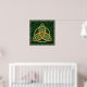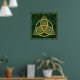 Ein originelles keltisches Trinity Knot Design, in Grün und Gold, mit keltischer Knüpfarbeit dekoriert und gerahmt auf einem Feld von Grün.