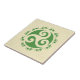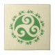 Moderne grüne Triskelion / triskele Celtic Symbol und festliche kreisförmige Grenze von Kleeblättern auf einem hellbeigen Imitat begraben Hintergrund.