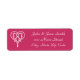 Das helle, rosa Retourenschild ist mit einem weißen keltischen Weberherz auf dem verlassen und dem Sample-Text auf der rechten Seite dekoriert, um es individuell zu gestalten. Verwenden Sie diese Etiketten auf der Außenseite Ihrer Einladungen oder "Dankeschön"-Karten für eine elegante Touch, besonders wenn sie mit den anderen Celtic Weave Hearts in Raspberry-Karten kombiniert werden, oder tauschen Sie die Standard-Adressetiketten ein, um die RSVP-Karten für Ihre Gäste vorzuadressieren.