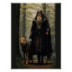 Ein mittelalterlicher keltischer Magier geht mit seinem Wolfskind durch einen mystischen Wald. Das Abenteuer wartet im Inneren.