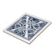 Ein schöner, dekorativer, keltischer Buchstabe, beleuchtet mit grauen Drachenköpfen auf einem samtig dunkelblauen Hintergrund.
