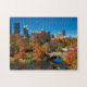 Schönes Foto von New Yorker Wolkenkratzern und Steinbrücke im Central Park im Herbst.