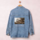 Hübsche Denim-Jacke zum Feiern des Central Park. Das Vintag inspirierte Sepia-Bild der historischen Delacorte-Uhr, die seit Generationen den Eingang des Zentralen Parks bewundert.