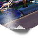 Century Endeavor, ein Bucht-Pacer beim Saratoga Harness Rennen in der Nacht zu gewinnen. Der Hintergrund ist voll von bunten Lichtern und ein üppiger Brunnen schmückt das Innere. Fleetphoto