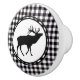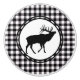This ceramic cabinet knob is shown in a Black, White buffalo plaid with an elk print.
