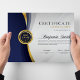 Honor achievement in style with this Elegant Blue & Gold Certificate of Excellence Template, thoughtfully designed to deliver a bold, modern, and distinguished presentation. Featuring flowing blue and gold wave detailing along one side, a refined neutral background, graceful script typography highlighting the recipient’s name, and a classic gold award seal, this certificate instantly conveys prestige and accomplishment. The balanced layout keeps the recipient’s name as the focal point while offering clearly defined sections for award details, date, and signature. Its sleek and professional design makes it ideal for corporate recognition, employee awards, academic excellence, leadership honors, training completions, ministry acknowledgments, volunteer appreciation, and special milestones.