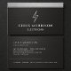 Showcase your certification and electrical expertise with this metallic silver and black electrician business card. The sleek metal-inspired aesthetic delivers a high-credibility, technical look, while clean typography highlights your name, certification number, specialties, and contact details with clarity. Ideal for certified electricians, electrical contractors, technicians, and service professionals, this print-ready card stands out during job site visits, inspections, estimates, and client meetings. A bold, modern design that communicates skill, reliability, and professionalism.