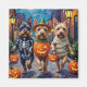 Adorable Cesky-Terrier, die in verspielten Halloweenkostümen gekleidet sind, tragen Kürbiseimer, während sie unter dem mondbeleuchteten Himmel tricksen oder sich behandeln. Dieses festliche Design hebt das seidene Fell der Rasse, die treue Natur und die fröhliche Persönlichkeit hervor und prägt perfekt die gespenstische und dennoch lustige Atmosphäre Halloween-Abends. Eine wunderbare Feier für Hundefreunde und Halloween-Fans gleichermaßen.