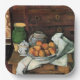 Paul Cezanne Gemälde: Gefäße, Obst und Tuch vor der Brust, quadratische Kachel.