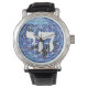 Tragen Sie das Wesen von Leben und Spiritualität auf Ihrem Handgelenk mit dieser eleganten Armbanduhr aus Chai (ח י), die das heilige hebräische Symbol Set gegen einen faszinierenden Baum des Lebens inspiriert Muster zeigt. Die dunkelblauen Farbtöne verleihen dem Ganzen ein Gefühl der Ruhe, während das elegante silberne Gehäuse und der echte Ledergurt eine Touch der Eleganz verleihen. Diese Uhr ist perfekt für alltägliche Kleidung oder besondere Anlässe geeignet und verbindet Tradition und Moderne. Sie ist ein symbolisches und stilvolles Uhrwerk für jeden Anlass.