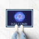 Ein blaues Fraktal mit einem Stern von David und "Chai", Hebräisch für das Leben; zusammen mit dem Textlesen "Willkommen".