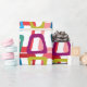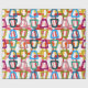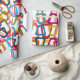 This wrapping paper has a mid-century modern design of rounded triangles in rows.