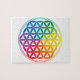 Sie können das bunte Gitter der Blume des Lebens neben Kristallen verwenden, um beim Heilen zu helfen.