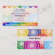 Dieses Design repräsentiert die sieben Hauptchakren, die spirituelle Energiezentren im Körper sind. Dazu zählen Wurzel, Sakralwurzel, solarer Plexus, Herz, Hals, drittes Auge und Kronchakra. Jede ist eine Farbe des Regenbogens: rot, orange, gelb, grün, blau, indigo und violett. Diese Visitenkarte ist perfekt geeignet für einen Energieheiler, Reiki Meister / Lehrer, Yoga-Lehrer oder jeden anderen im spirituellen / heilenden Bereich.