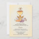 Eine geschlechtsneutrale Einladung der First-Holy-Kommunion enthält eine Chalice mit Eucharist und Kreuz, Weizen, Brot und Trauben, alle Symbole der Kommunion. Der Hintergrund ist bräunlich mit einer dunkleren Grenze. Der Rücken hat ein abstraktes Dreieck in Bräunungen und Creme.