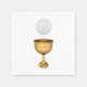 Dieses Design ist eine Keule. Der Kalice ist Gold und hat darüber ein Stück Brot. Dieses Chalidesign sieht auf diesem Papier Napkins großartig aus