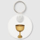 Dieses Design ist eine Keule. Der Kalice ist Gold und hat darüber ein Stück Brot. Dieses Chalidesign sieht auf diesem Schlüsselanhänger großartig aus