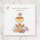 Ein geschlechtsneutraler Gastgeschenk-Sacktag für eine Erste Heilige Kommunion ist mit einem Goldgräber, Eucharist mit Kreuz, Brot und Trauben versehen. Das sind die Symbole der Kommunion. Passen Sie Ihre Wünsche an.